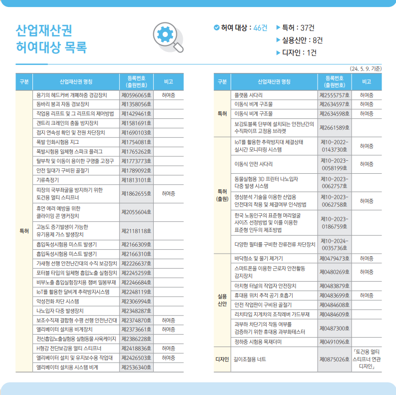 [안전보건공단] 2024년 산업재산권 허여 안내