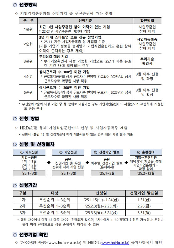 한국산업인력공단에서 [2025년 기업직업훈련카드 참여기업]을 다음과 같이 모집합니다.