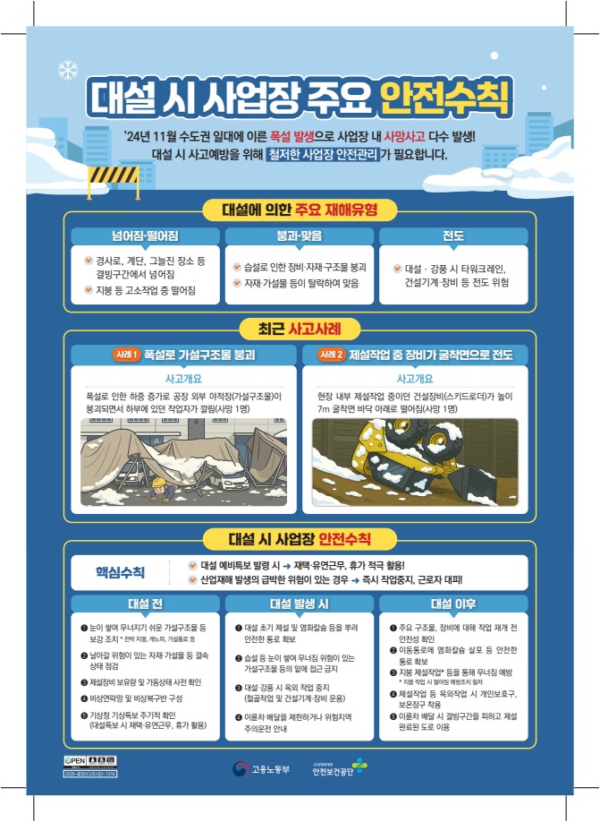 [안전보건공단] 대설 시 사업장 주요 안전수칙